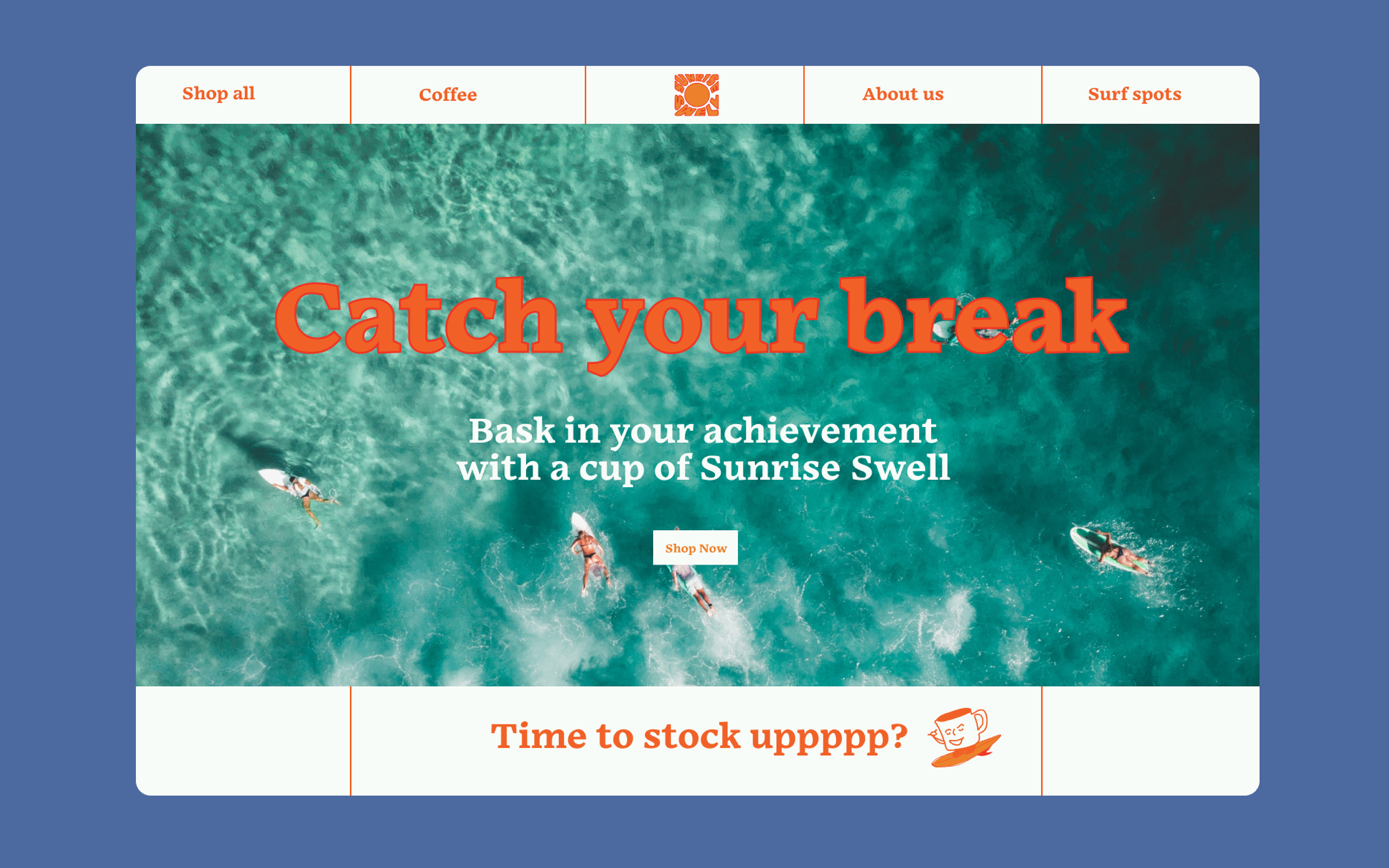 Sunrise Swell is organic coffee company. The design is influenced by surf culture and seizing the day.